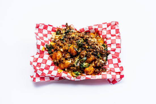 Tap the Order Now button below. Once the food hall’s ordering page opens, scroll sideways through the list of restaurants until you see Vegan Junk Food. Tap our name to open our full menu, then choose a category like “Entrees,” “Soulful,” or “Snackz” and place your order!